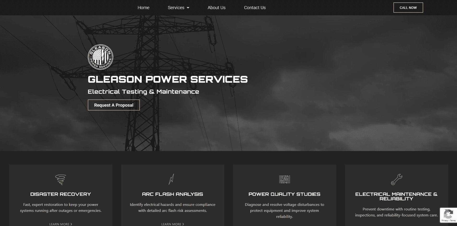 A brand-new website built from scratch for a power services company focused on electrical testing. Designed to be clean, technical, and dark-themed, the site features individual service pages and bold branding that reflects the serious nature of their work.
